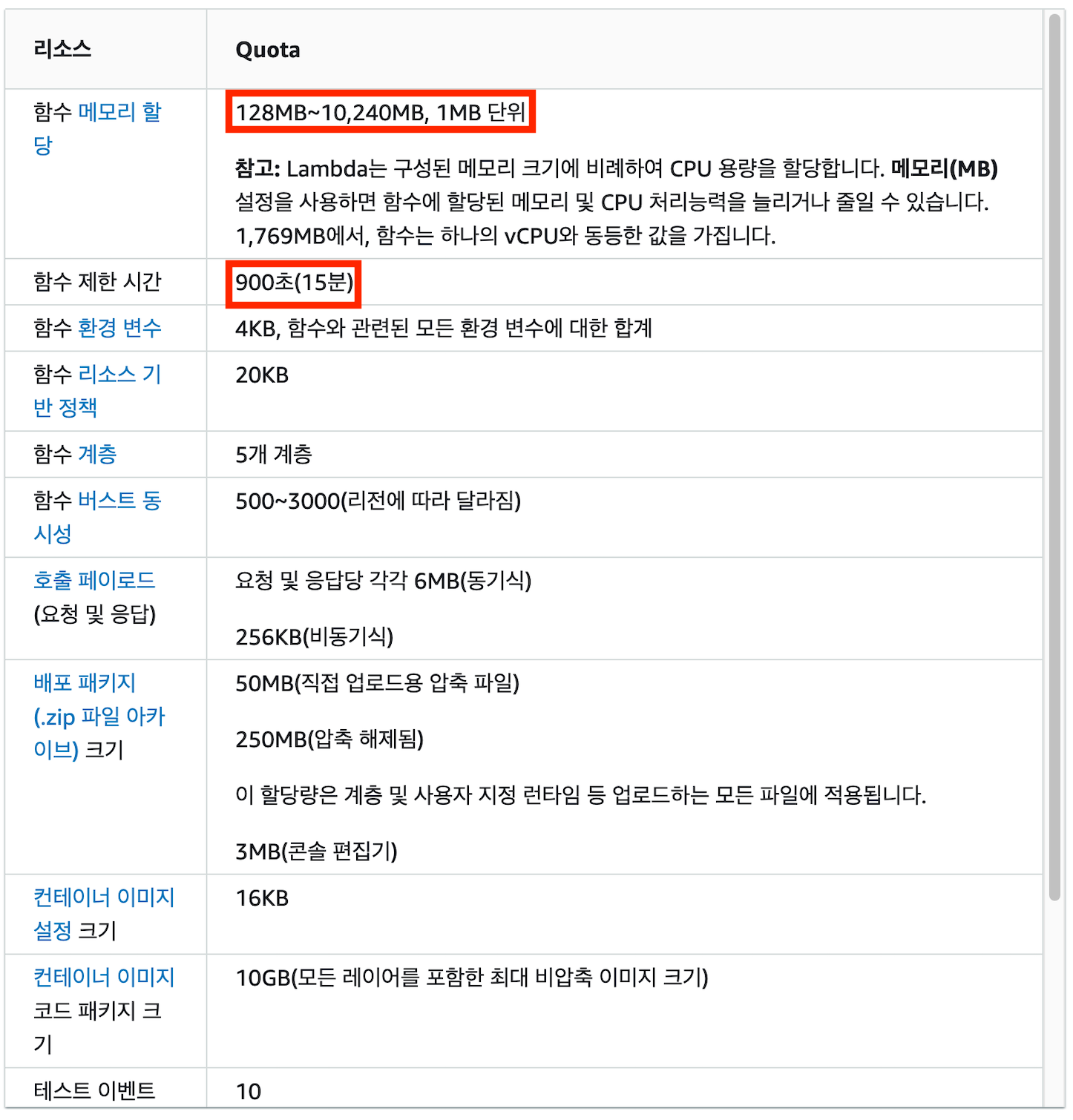 1. 리소스 제한(제한된 런타임 옵션, 실행시간) : 최대 15분 / 최대 10GB / 최대 6개의 Core 등