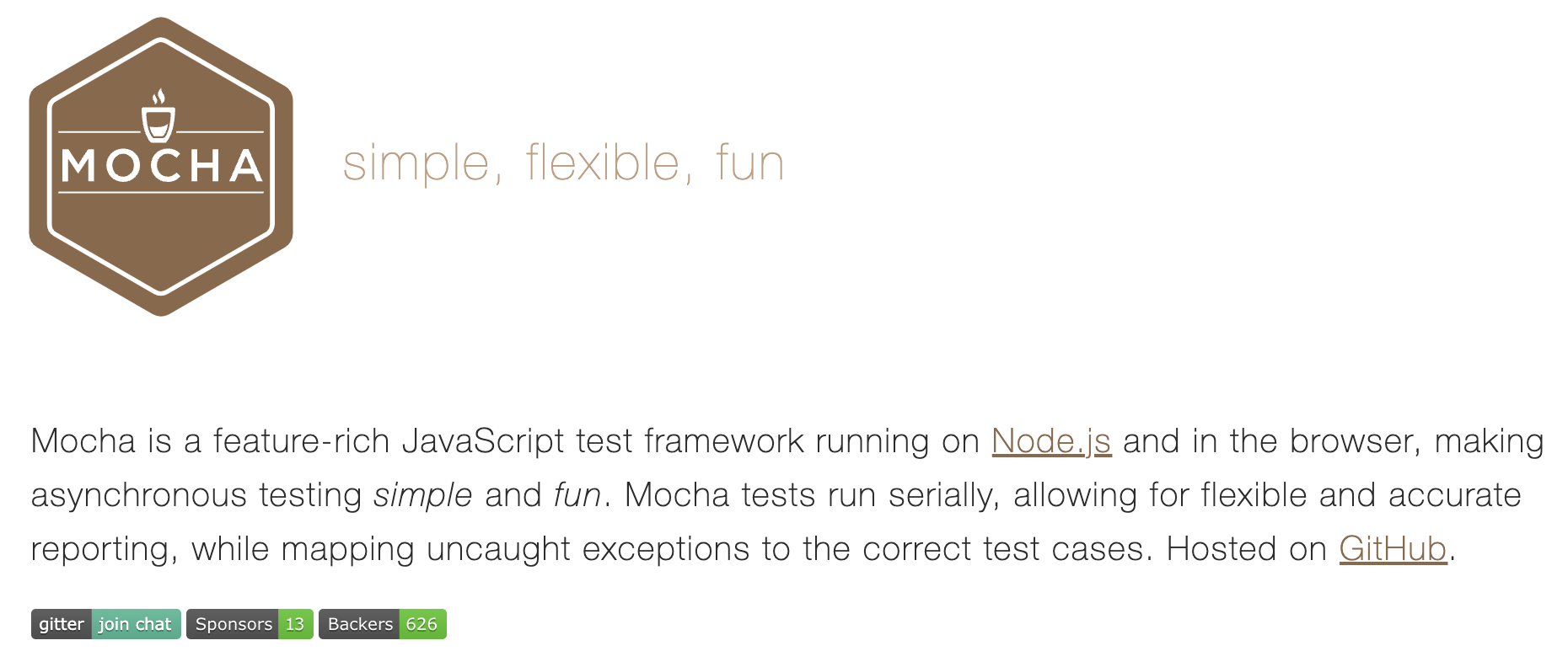 테스트를 위한 대표적인 프레임워크로는 mocha가 있음.