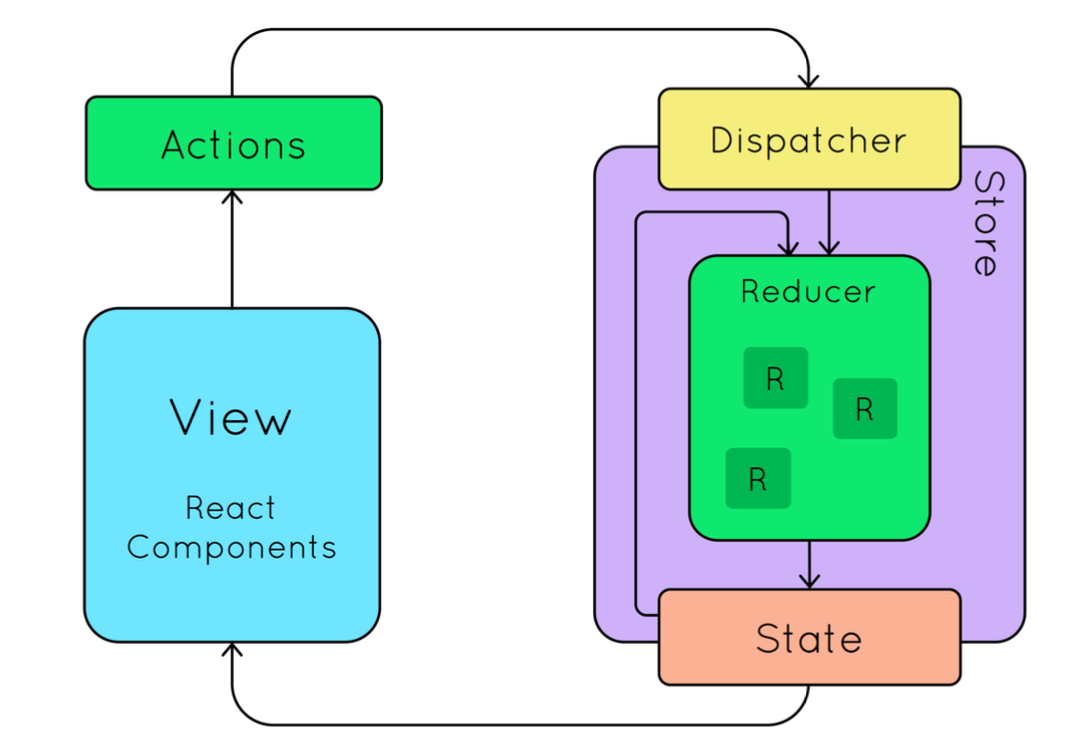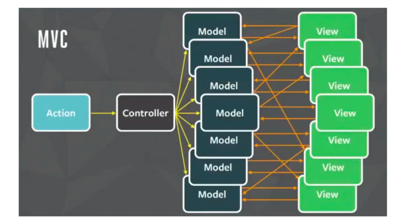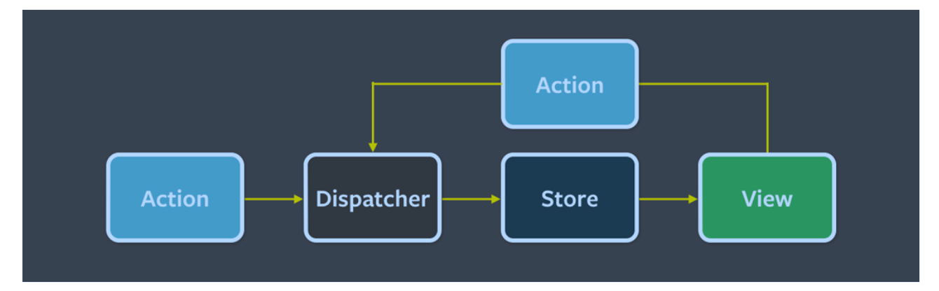 즉, 뷰에서 일어난 것이 모델에 영향을 끼치기도 그 반대도 영향을 미치는 로직도 있는 상황이 발생하여 데이터를 일관성 있게 뷰에 공유하기가 어려웠음. 이를 위한 해결방법으로 데이터가 “한방향”으로만 흐르게 flux 패턴이 등장