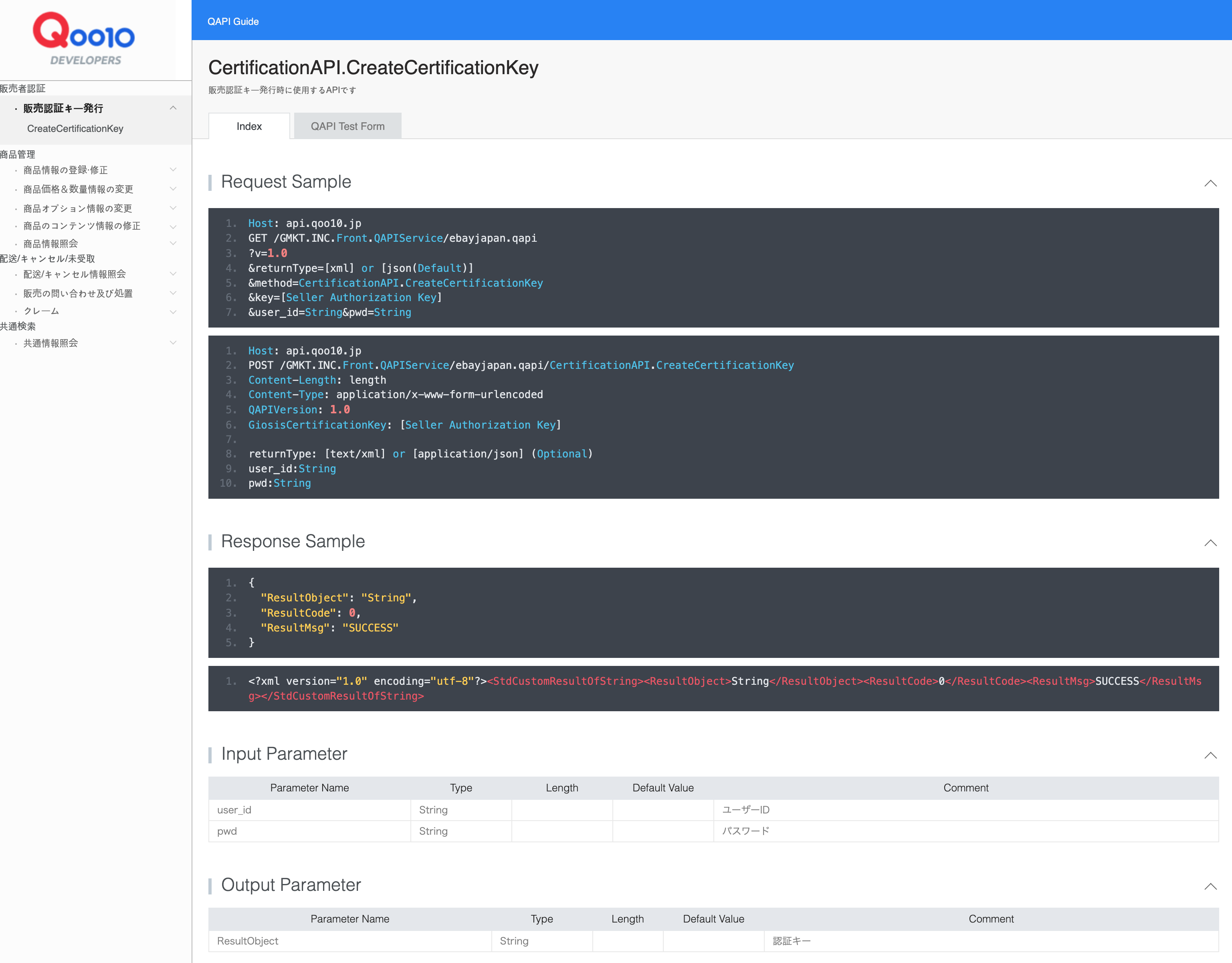 Qoo10은 다른 오픈마켓들과 다르게 oauth 방식이 아니다. 오히려 계정으로 API key를 발급받기 때문에 오히려 더 쉽다. Qoo10의 경우, developer 사이트가 SG, JP 각각 다르게 제공한다는 점을 참고하자. 사이트의 안내서만 다를 뿐 거의 동일하다 보면 된다. 여기서는 JP developer 기준으로 설명하겠다. (해당 페이지는 모두 일본어로 제공되기 때문에 한국어 번역을 하고 봐야하는 불편한 점이 있다.)