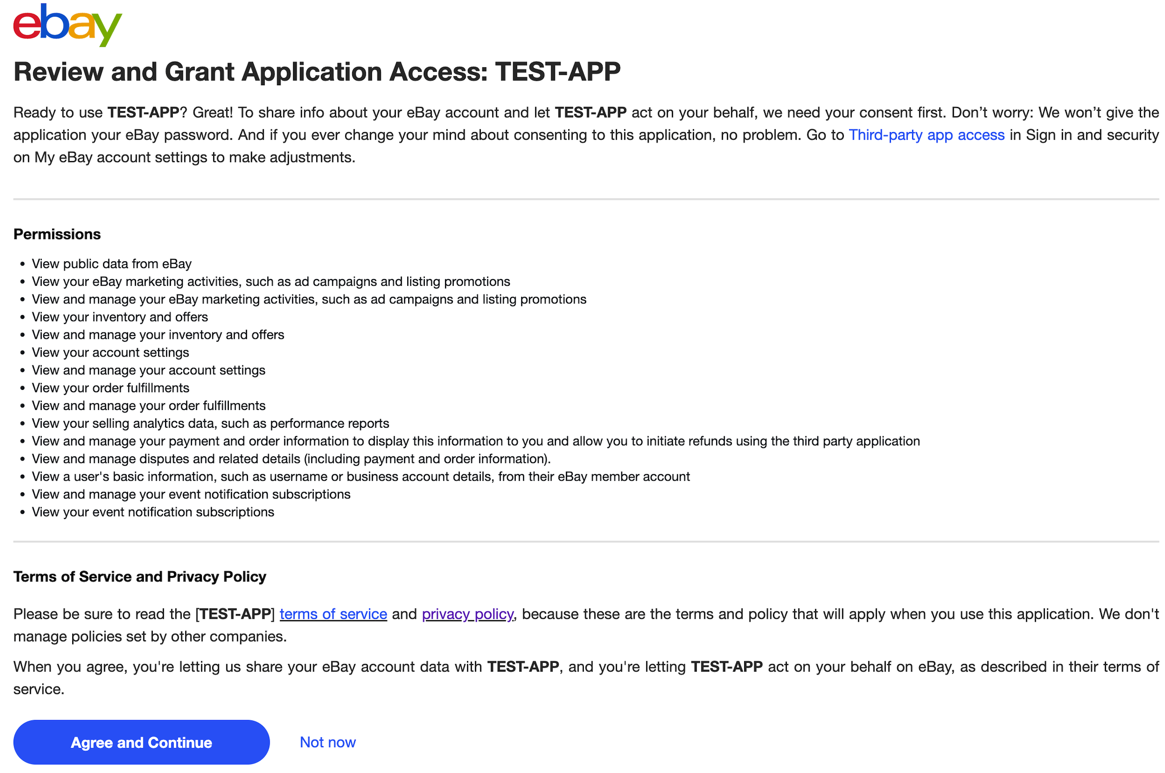토큰을 발급받기 전에 애플리케이션의 Sign-in Setting을 해준다. eBay는 토큰 발급 받는 방법은 OAuth방식과 Auth'n'Auth 방식 2가지가 있다. RESTful API를 이용하려면 OAuth방식을 선택해야하고, Traditional API를 이용하려면 Auth'n'Auth방식을 선택해야 한다. 둘의 차이는 API 호출 방식이 다르고, RESTful API이 신버전, Traditional API이 구버전이라고 생각하면 이해하기 쉬울 것 같다. 물론 신버전인 RESTful API만 사용하면 좋겠지만, 필요로 하는 정보가 Traditional API에서밖에 지원이 안되서 어쩔 수 없이 Traditional API를 써야하는 경우가 있다.(예를 들어 리스팅 된 상품정보를 불러오려면 Traditional API를 써야한다.) Traditional API는 사용하려면 XML 형식으로 요청을 해야한다.