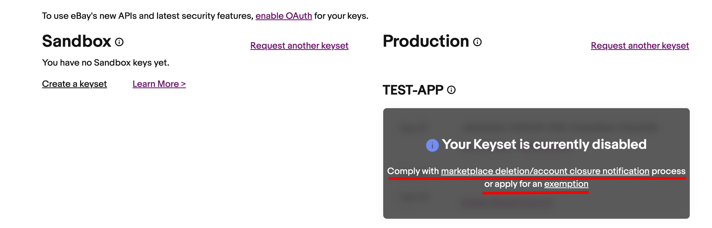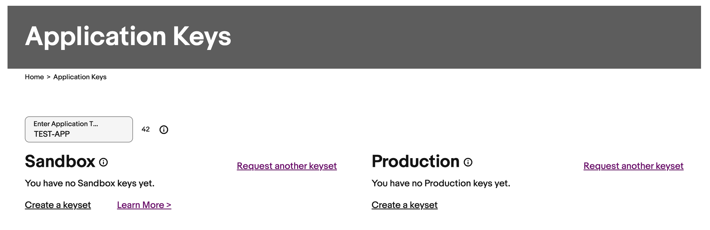 eBay Developers Program account 계정을 생성한다. 생성을 하면 하루정도 시간이 걸린다.(이베이쪽 승인이 필요한 것 같다.) 계정이 생성되면 로그인 한 후 우측 상단 Application Keysets 메뉴에서 Application Keys를 생성해보자